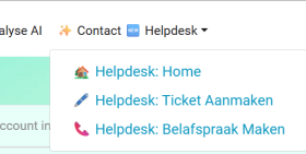 Voor therapeuten met een account op kwaliteitsysteem.nl is Catsupport.nl makkelijk te bereiken door in het hoofdmenu (boven in op de pagina) het “✨ Contact 🆕 Helpdesk” menu te openen (door er op te klikken) en een keuze te maken tussen: Gaan naar de home pagina, de Ticketservice pagina of de Belafspraken pagina van CATsupport.nl.